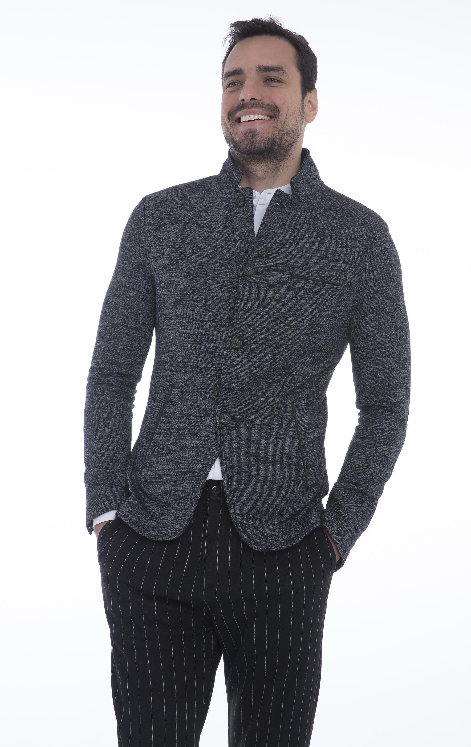 CEKMON Erkek Slim Fit Dik Yaka Düğmeli Cepli Örme Spor Blazer Ceket (5736)