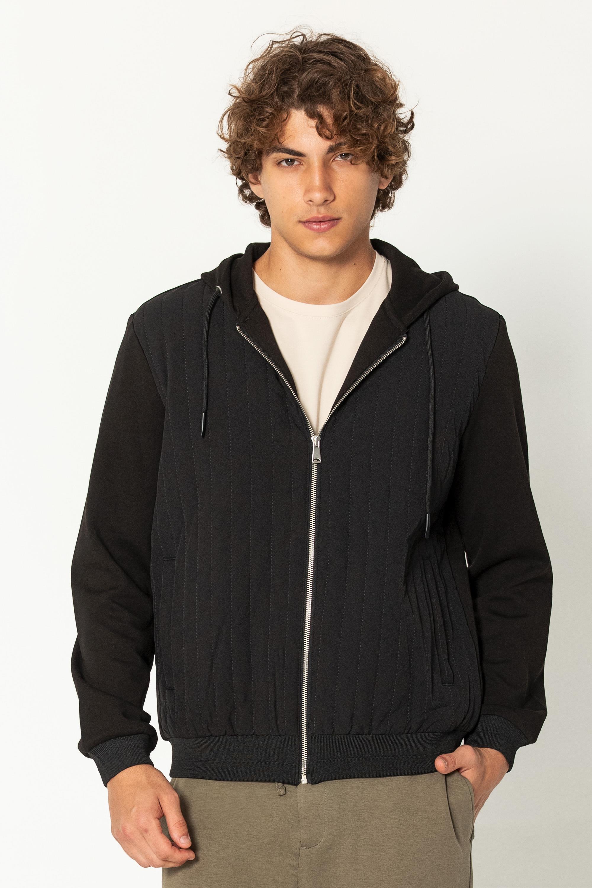 CEKMON Erkek Kapüşonlu Fermuarlı Çift Kumaş Kapitone Detaylı Sweat Mont
